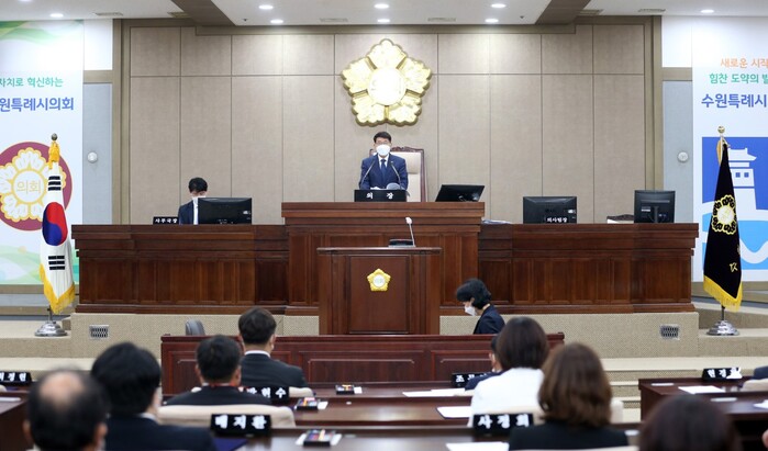 이어 의회는 개원식을 열고 이재준 수원특례시장, 시 간부공무원 등이 참석한 가운데 의원선서, 개원사 등의 순서로 진행했다.