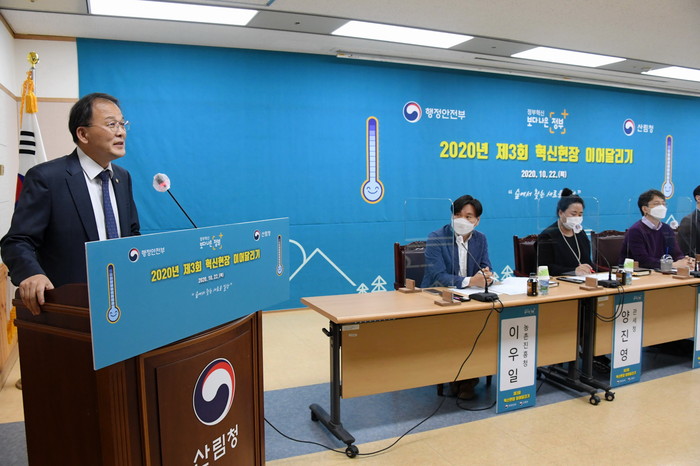 ▲제3회 혁신현장 이어달리기에서 박종호 산림청장이 인사말을 하고 있다.(산림청 제공) |