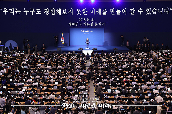 저는 ‘5월1일경기장’에서 열린 대규모 집단체조와 공연에서 15만 평양시민들에게 대한민국 대통령으로서 사상최초로 연설을 하는 기회를 가졌습니다. 그들은 한반도를 영구히 핵무기와 핵위협이 없는 평화의 터전으로 만들어야 한다는 저의 연설에 대해 열렬한 박수를 보내주었습니다.