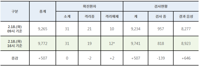 한편 중앙방역대책본부는 코로나19 발생이 새로운 국면을 맞이하고 있다며, 지역사회 감염이 확인된 국가나 지역의 방문객, 의료기관, 일반 국민을 대상으로 감염예방 수칙 준수를 거듭 당부했다.