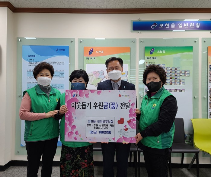 [로컬세계 김병민 기자]경기 용인시 처인구 모현읍은 모현읍 새마을부녀회에서 경상북도, 강원도의 산불피해 복구를 위해 써 달라며 성금 100만원을 기탁했다고 24일 밝혔다.