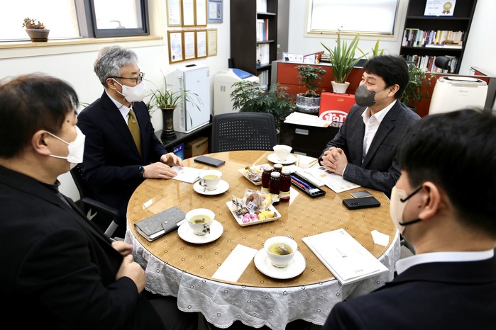[로컬세계 김병민 기자]조석환 수원특례시의회 의장이 10일 팔달구에 위치한 수원시니어클럽을 방문해 이종성 관장을 비롯한 관계자를 격려하고 노인일자리사업 활성화를 위한 간담회를 가졌다.