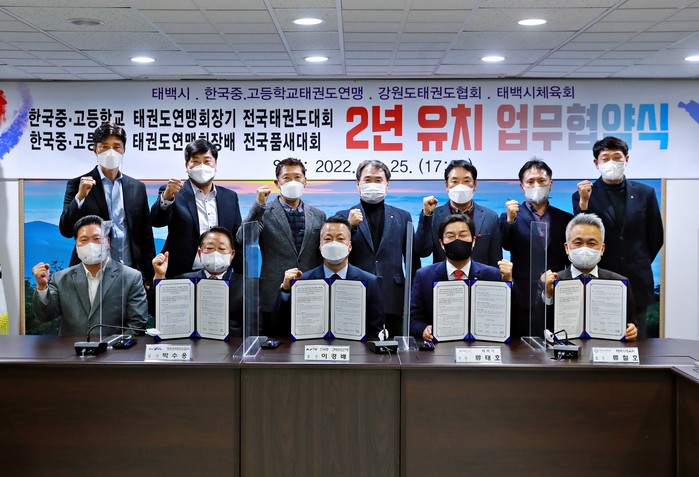 협약서에 따르면 처음으로 태백에서 개최하는 ‘한국중고태권도연맹회장기 전국 태권도 대회 및 한국중고태권도연맹회장배 전국 품새대회’를 2022년부터 2023년까지 2년 동안 태백시에서 개최하기로 했다.