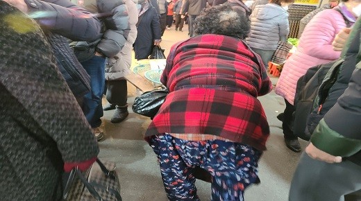 “할머니 많이 파세요”라고 인사를 하고 부전시장의 남쪽을 향해 가다 보니, 이번엔 70대 중후반으로 보이는 허리가 굽은 상태로 손수레를 미는 한 할머니의 모습이 눈에 들어왔다.