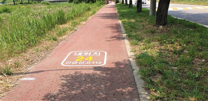 ▲경안천 산책로에 표기된 '안심번호 위치마크' |