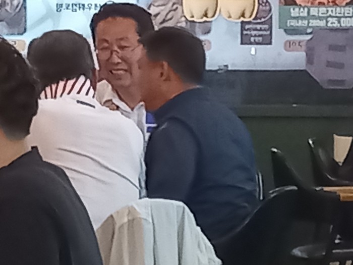 ▲박재범 남구청장 후보가 21일 부산 남구 문현동 지역의 한 식당에서 지역 유권자들과 대화를 나누며 지지를 호소하고 있는 모습. 박재범 선거사무실 제공 |
