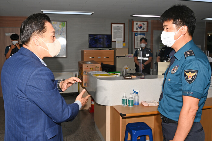 또 경기수원서부경찰서매산지구대를 방문해 근무 중인 경찰들을 격려했다.