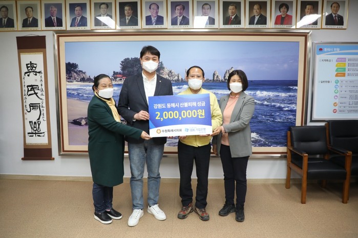 [로컬세계 김병민 기자]경기 수원특례시의회(의장 조석환)가 25일 최근 산불로 큰 피해를 입은 강원도 동해시를 돕고자 동해시의회를 찾아 성금 200만원을 전달했다.
