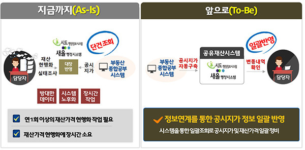 그동안 자치단체 담당자는 국토부의 공시지가 발표 후 변경된 내용을 일일이 수동으로 공유재산시스템에 입력해 실제 공시지가 반영이 최소 1~2개월 이상 늦어졌었다.