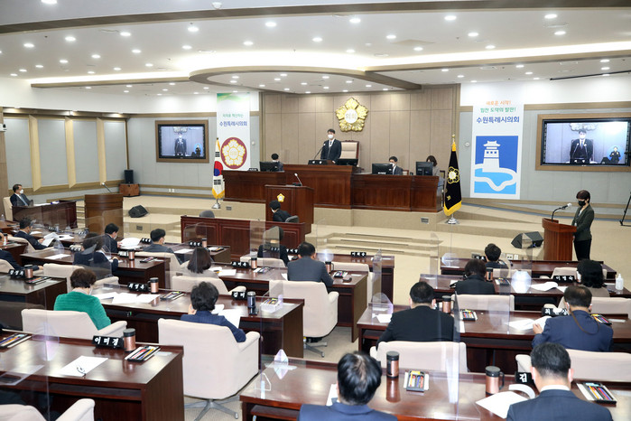 조석환 의장은 개회사를 통해 “집행부가 6월 말까지 수원시장 권한대행 체제인데 시민들의 생활에 불편이 없도록 최선을 다해 주기 바란다”고 말했다. 또 “수원특례시의회가 늘 시민의 곁에서 함께 하겠다”