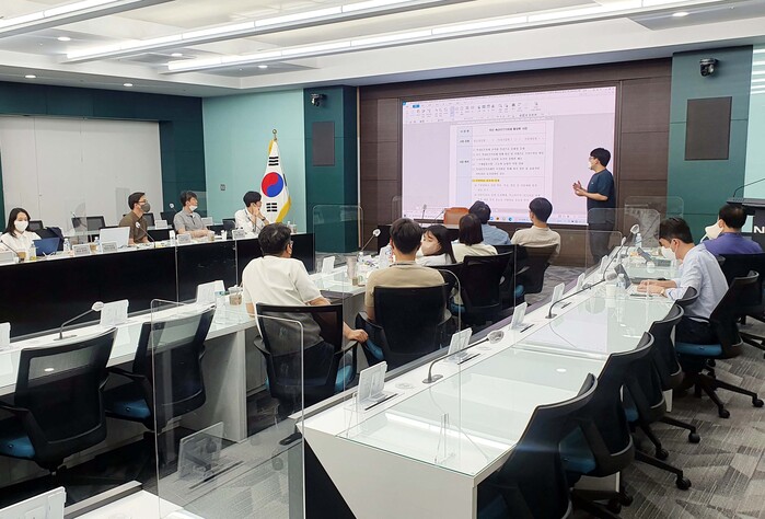 ▲사내벤처 아이디어를 설명하고 있는 나주축산물공판장 김민태 계장. 농협 제공 |