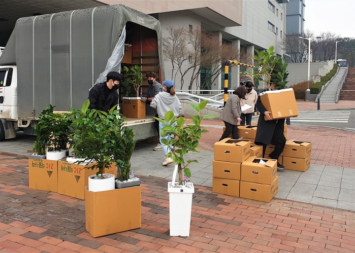 이날 전달한 반려식물은 공기정화 효과가 있고 키우기 쉬운 고무나무, 녹보수, 금전수 등과 테이블에 놓고 키우기 좋은 다육식물 등이다.