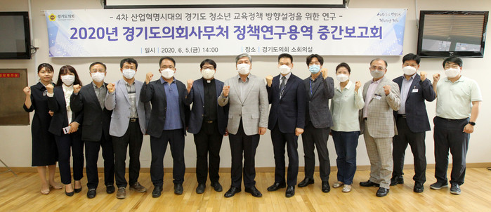 이날 보고회는 송한준 경기도의회 의장을 비롯해 경기도 미래산업과, 청소년과 및 경기도교육청 학교정책과장 등 관계 공무원 등이 참석한 가운데, 연구 수행기관인 경기대학교 신동윤 교수의 연구용역 추진현황과 계획 보고 후 각 기관별 의견수렴이 이뤄졌다.