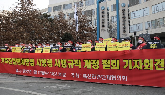 한편 농림축산식품부는 지난 12일 ‘가축전염병 예방법 시행령’을 기습 입법예고했다. 해당 시행령, 시행규칙에는 △ 8대 방역시설 설치 전국 의무화 △규정 위반 농가에 대한 세부적 처벌 규정 등이 포함됐다. 특히 벌칙 규정에는 사육제한·농장폐쇄 등이 포함되어 농가들이 크게 반발하며 철회를 촉구하고 있다.