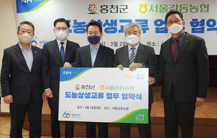 서울강동농협(조합장 박성직)은 29일 강동농협 로데오지점 에서 홍천군청(군수 허필홍)과 '도농상생교류'를 위한 업무협약을 체결했다고 밝혔다.
