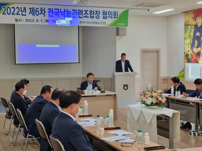 ▲ 맹광렬 협의회장(천안공주낙협 조합장)이 지난 9월 1일 충북낙농농협에서 제6차 전국낙농관련조합장 협의회를 주재하고 있다. 농협 제공 |