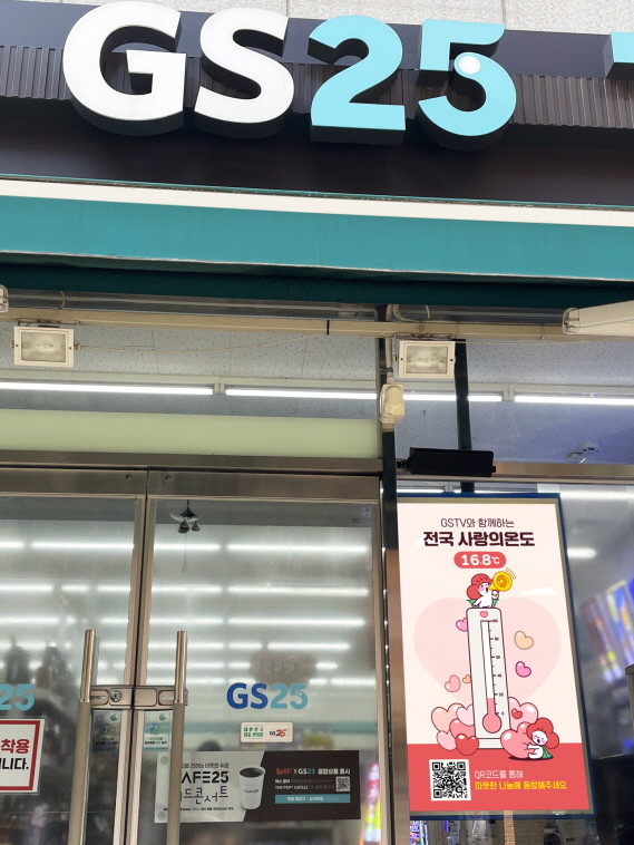 | ▲전국 GS25 매장에 설치된 GSTV에서 12월 6일 기준 전국 사랑의온도 16.8도를 알리고 있다. |
