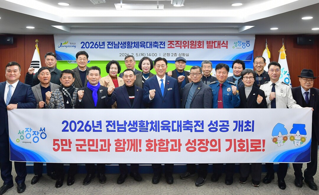 장성군은 지난 5일 군청 상황실에서 전라남도생활체육대축전 조직위원회 발대식을 열고 본격적인 준비에 착수했다. 조직위원회는 김한종 장성군수를 위원장으로, 부군수와 체육회장, 장애인체육회 상임부회장을 부위원장으로 구성됐으며, 유관기관장과 사회단체장, 언론인, 체육회 임원 등 총 23명이 참여한다.