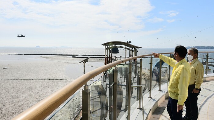 정 시장은 이날 훈련 중인 F-4E 전투기 1대가 서신면 송교리 윤돌섬 인근에 추락한 소식을 접한 뒤 곧 장 사고 현장으로 달려갔다.