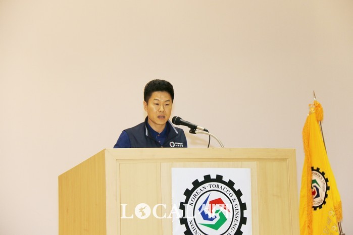 ▲조상언 제8대 한국인삼공사(KGC) 노조위원장이 취임사를 하고 있다. 오영균 기자. |