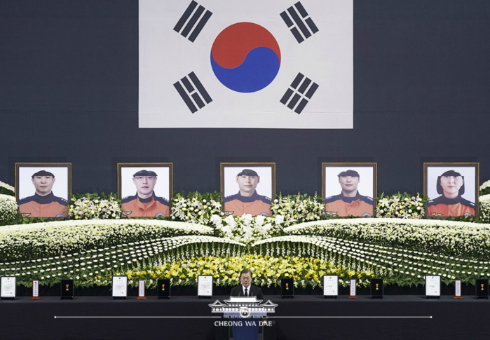 저는 오늘 용감했던 다섯 대원의 숭고한 정신을 국민과 함께 영원히 기리고자 합니다.