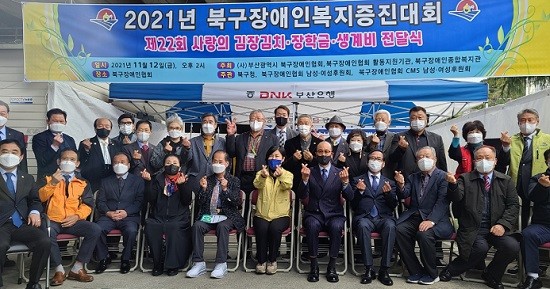 [로컬세계 부산=글·사진 김의준 기자]부산지역에서 가장 효율적으로 운영되고 있다는 평가를 받고 있는 부산 북구장애인협회와 북구장애인종합복지관, 북구장애인협회 활동지원기관이 공동으로 12일 오후 ‘2021년 북구장애인 복지증진대회’를 개최했다.