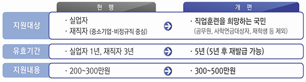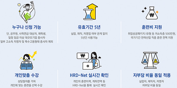 특히 기존 1∼3년이었던 유효기간은 5년(재발급 가능)으로 연장해 정부 지원 훈련비를 본인이 필요한 시기에 탄력적으로 활용할 수 있도록 했다.