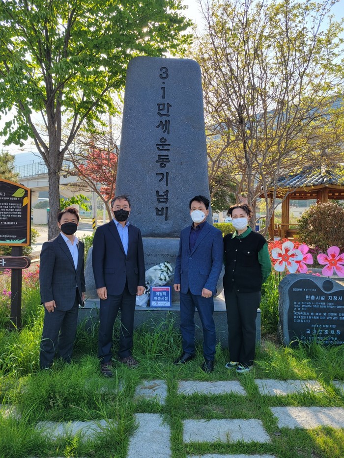 [로컬세계 부산=맹화찬 기자]부산지방보훈청 임성현 청장과 총무과장 등은 20일 좌천시장3·1만세운동기념탑을 현장 점검하고 참배 했다.