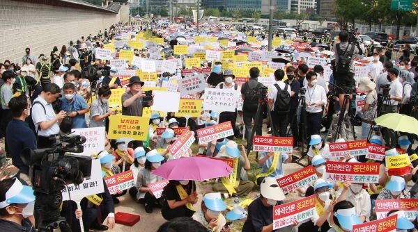 ‘가정연합 재한 일본인 신도 언론피해대책위’ 소속 4000여명 광화문광장서 항의집회, ‘일본 현지언론 왜곡보도’ 강력 비판