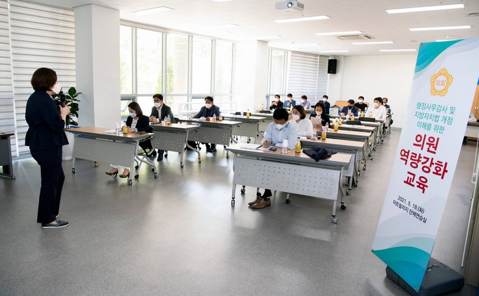 이번 교육은 한국지방정치연구소 우지영 소장을 강사로 초빙해 지방재정 결산분석, 행정사무감사, 지방자치법 개정사항에 초점을 맞췄다.
