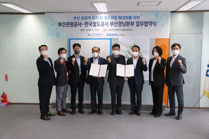 [로컬세계 부산=맹화찬 기자]한국철도 부산경남본부는 4월 7일(목) 부산관광공사와 부산 관광객 유치 및 철도관광 활성화를 위한 업무협약(MOU)을 체결했다고 밝혔다.