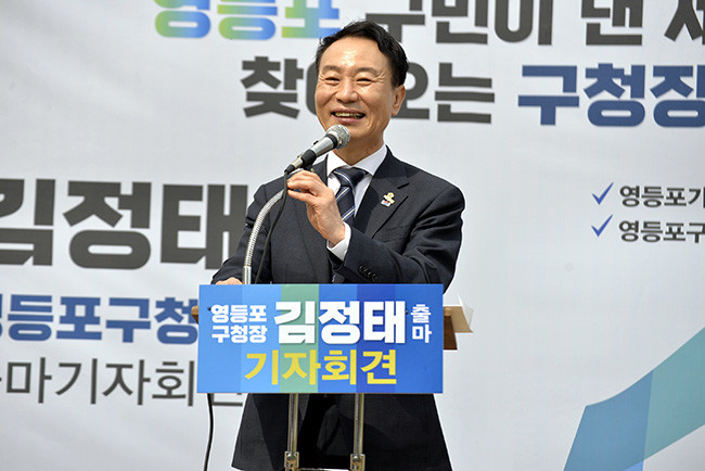▲ 영등포구청장 출마선언 하는 김정태 서울시의회 운영위원장. 사진=강영한 기자 |