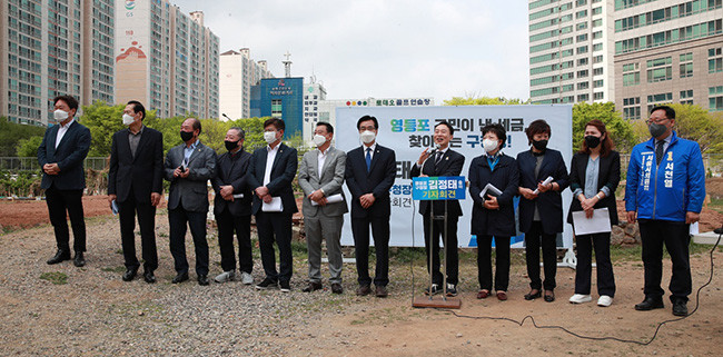 [로컬세계 강영한 기자]서울시의회 3선 의원의 김정태 운영위원장(더불어민주당. 영등포)이 12일 오전 10시 30분 영등포구 문래동 제2세종문화회관 건립부지에서 기자회견을 열고 영등포구청장 출마를 선언했다.