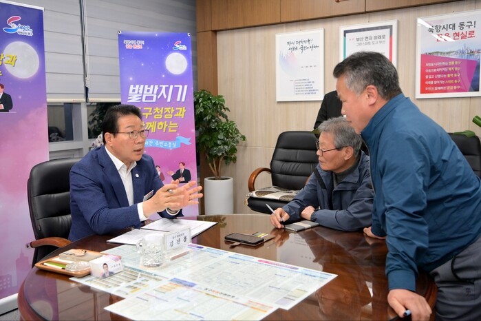 ▲부산 동구(구청장 김진홍 좌측,)는 제22대 국회의원선거때문 제한으로 개최할수 없어,29일부터 다시 야간 주민소통실을 재개한다. 동구청 제공 |