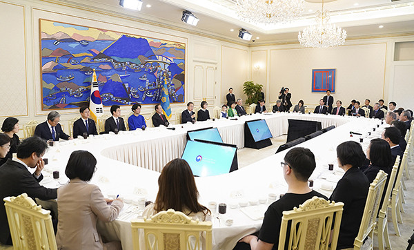 ▲문재인 대통령이 3일 오후 청와대에서 국가기후환경회의 위원 및 국민정책참여단 단원 초청 오찬 인사말을 하고 있다. (사진=청와대) |