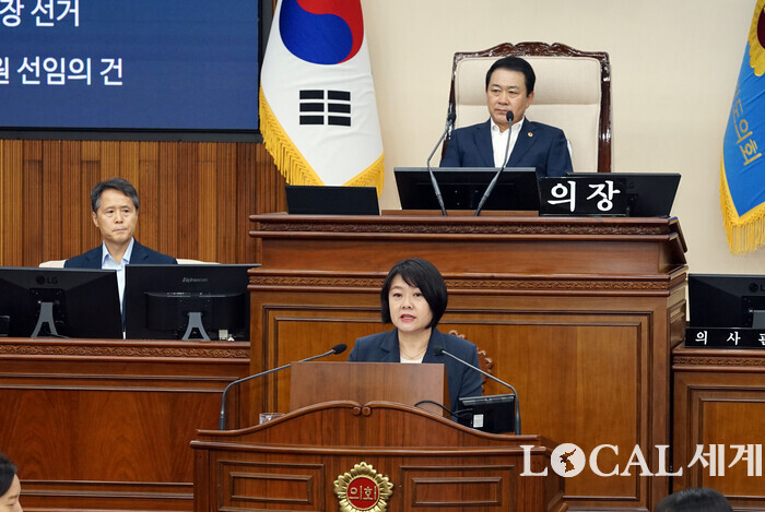 [로컬세계 =글·사진 전경해 기자] 1일 강원특별자치도의회 제11대 후반기 의장단이 선출됐다. 제330회 임시회 제1차 본회의에서 도의원 49명의 무기명 투표로 의장단과 상임위원장, 예결위원장 등을 선출했다.