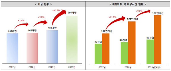 특히 올해 한국보육진흥원의 이용자 만족도 조사에 따르면 91.7%가 만족한다고 답한 만큼 이용 아동 수와 이용시간도 지속적으로 증가하고 있다.