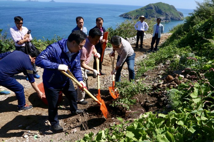 ▲충남도의회 의장단이 12일 격렬비열도에 소사나무를 심고 있다.(충남도의회 제공) |