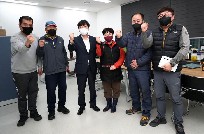 [로컬세계 김병민 기자]김상회 수원시장 예비후보(더불어민주당, 문재인정부 전 청와대 행정관)는 20일 수원의 최대 농수산물 유통시장인 수원농수산물도매시장의 한춘애 수산조합회장과 이병구 부조합장 등 6명의 조합장과 간담회를 가졌다.