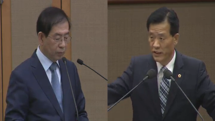 ▲ 이승로 의원이 박원순 시장에게 질의를 하고 있다. 서울시의회 제공 |