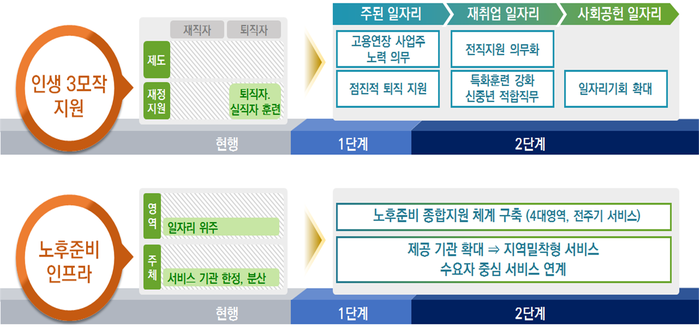 ▲신중년 인생 3모작 지원 및 노후준비 인프라 계획. |