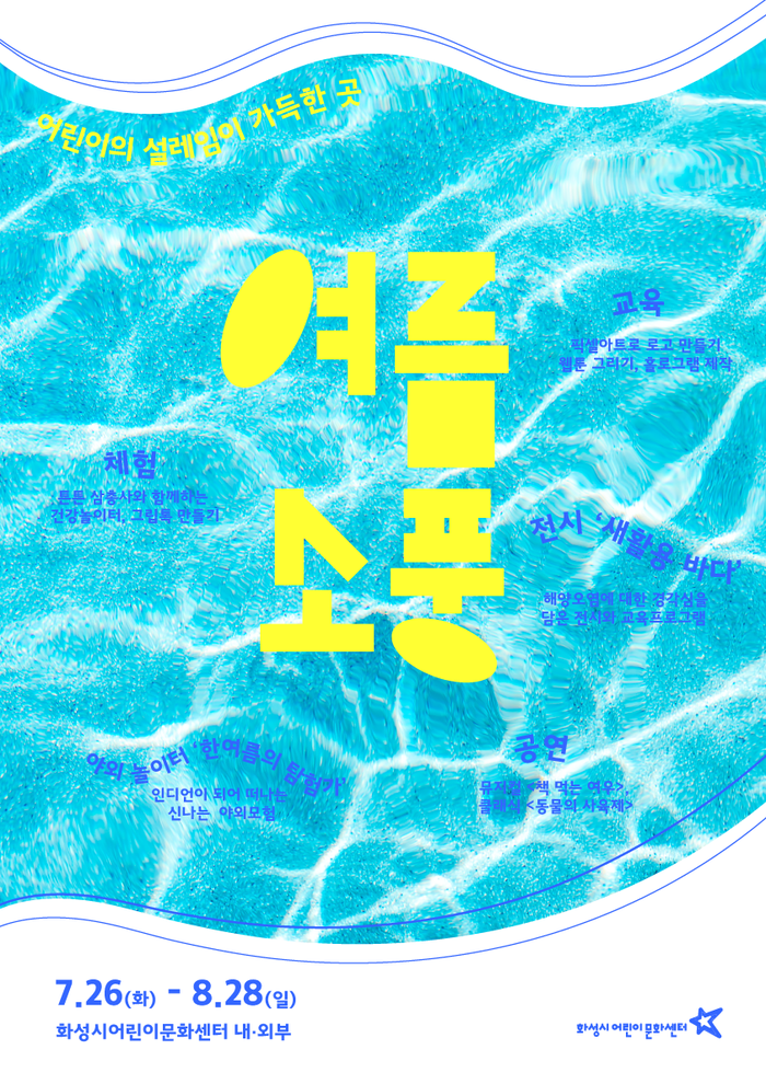 최정윤 화성시어린이문화센터장은 “무더운 여름, 가까운 어린이문화센터에서 더위도 식히고 즐거운 추억을 쌓을 수 있길 기대한다”고 말했다.