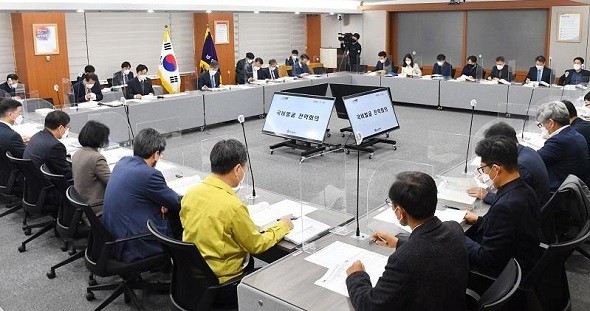 ▲부산시 주요 간부들이 23일 오전 회의실에서 이병진 행정부시장 주재로 ‘2023년 국비 발굴 전략회의’를 열고 있다. 부산시 제공 |