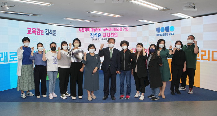 이에 앞서 부산지역 아동요리·푸드아트테라피 강사들은 17일 오전 10시 김석준 후보 캠프에서 김석준 부산시교육감 후보 지지를 선언했다.