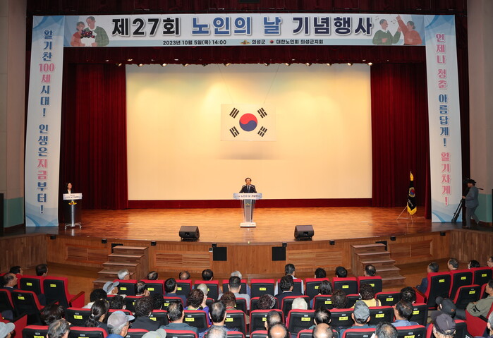 [로컬세계=박상진 기자]경북 의성군은 5일 '제27회 노인의 날'을 맞이하여, 의성 문화회관에서 기관단체장 및 각 마을 노인회장을 비롯한 600여명의 어르신이 참석한 가운데 기념행사를 성황리 마쳤다고 밝혔다.