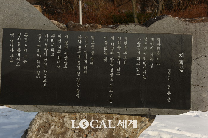 ▲‘지뢰꽃’이라는 시가 적힌 시비. |