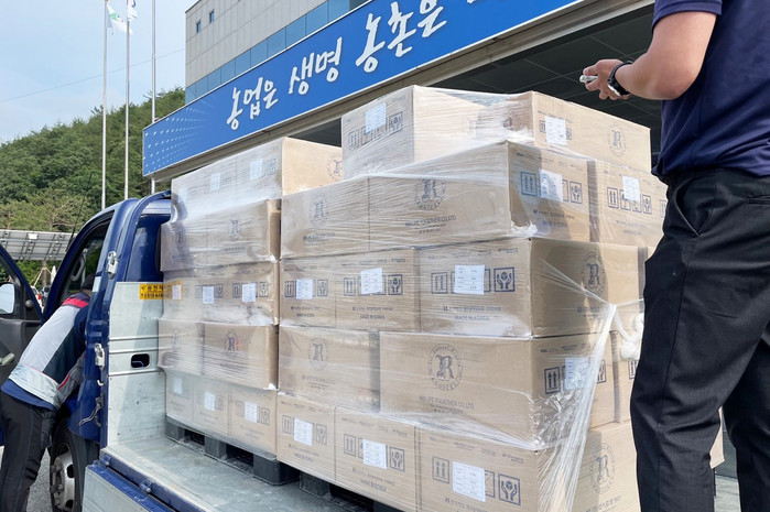 ▲과수화상병 예방 약제 긴급 공급. 청송군청 제공 |