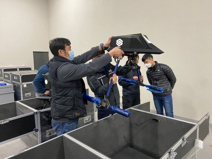 | ▲남해해경청 특공대원들이 여수 해양경찰교육원에서 드론을 전달받고 있다. |