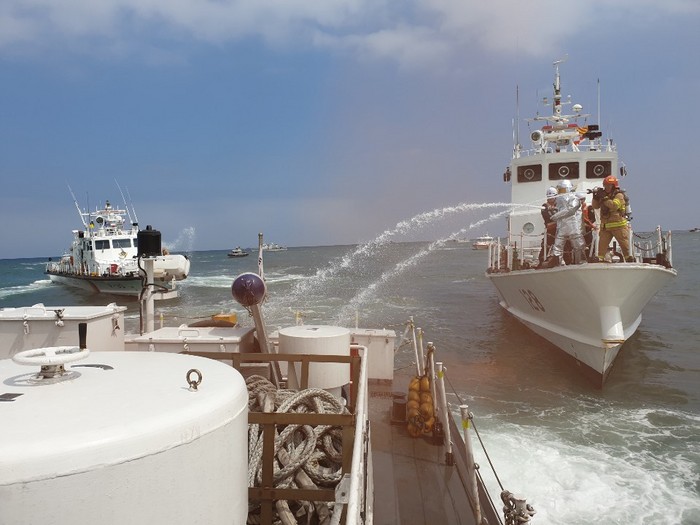 이어 테러범의 폭발물 사용으로 선박에 화재가 발생했으나 경비정에서 소화요원을 투입해 불을 끄고, 특공대가 저격수를 배치해 테러범을 진압하고 인질을 구출하는 순서로 진행됐다.