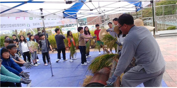 노원구 태랑초등학교를 시작으로 11개 학교에서 3200여 명의 학부모와 학생들이 벼 베기, 홀테・호롱이 탈곡, 쌀 방아찧기, 떡메치기 등을 체험하며 수확 이후 쌀의 가공과정을 직접 보고 느끼고 만지도록 구성했다.